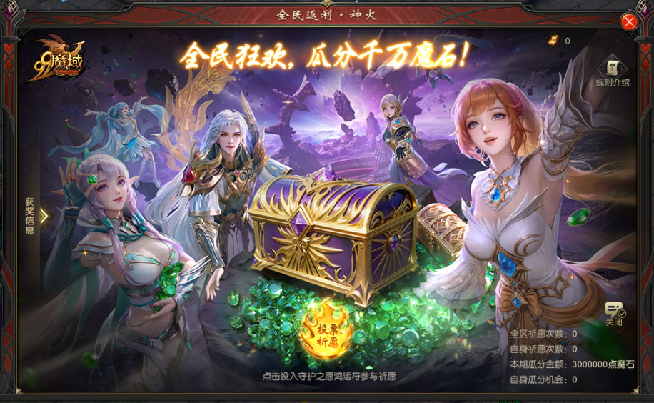 今夜22:05至22:30第四期祈愿开奖,“祈愿奖池”超500万点魔石待锦鲤攫取,单人最高狂揽百万点魔石,一夜暴富不是梦!“魔石奖池”300万点魔石今夜全民瓜分,凭券瓜分,阳光普照人人有奖!