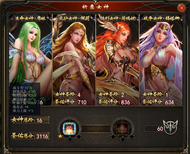 时过半月,许多玩家大概都掌握了怎么刷女神的四个随机属**!不清楚的我这在提一提,首先刷属性你必须有足够的圣力值,打开女神界面,点中其中的一个女神