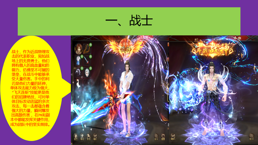 • 后期:后期战士的实力进一步增强,拥有“飞天连斩”等强力技能,在副本和PK中都有出色的表现,通过提升装备品质、培养幻兽等方式,不断提高自己的战斗力,成为团队中的核心力量。