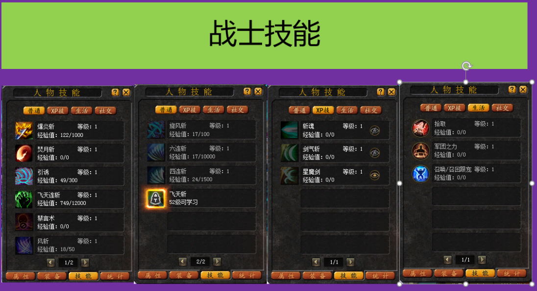 • 飞天斩:52级可学习,传说中赫尔基里所创的杀招之一,以狂暴的威力闻名,是战士的标志性技能之一。