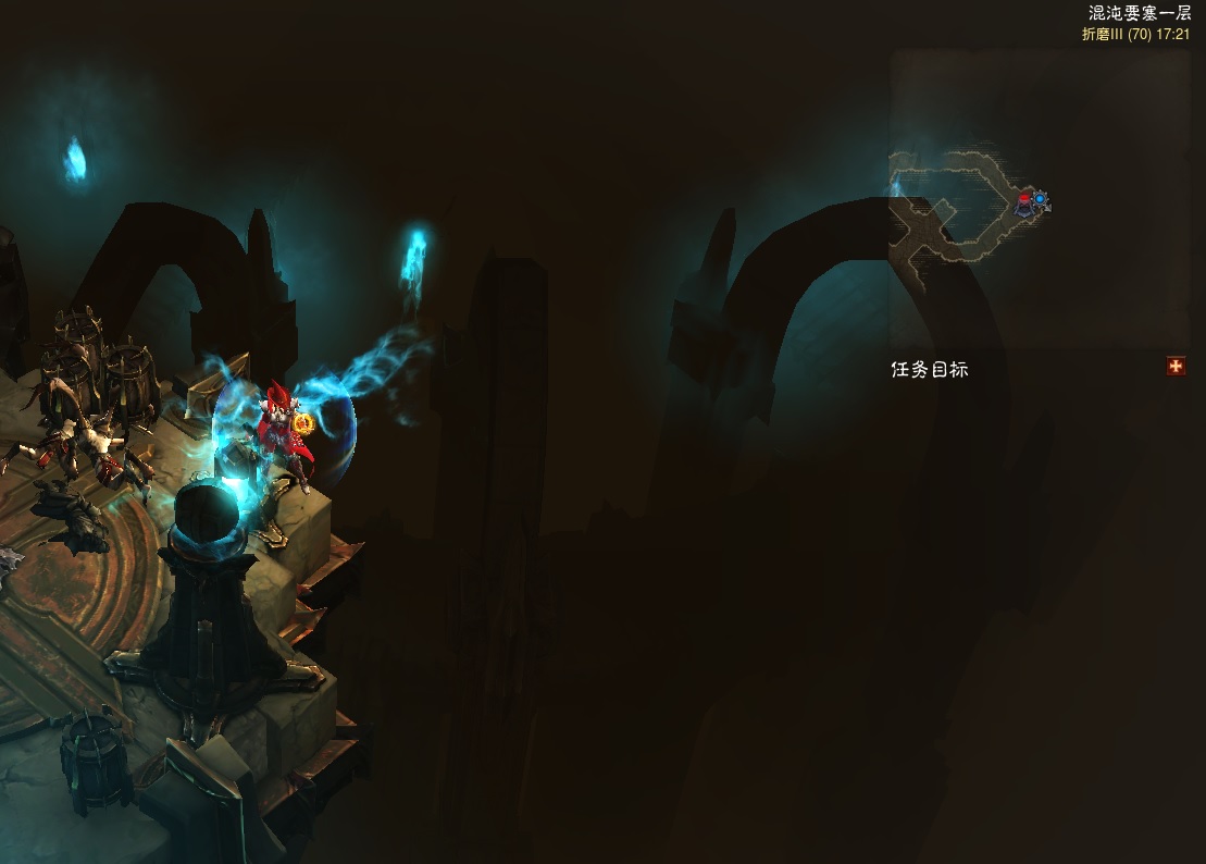 当前的混沌要塞是压抑的,四处都是奔逃的蓝色雾状灵魂,更是给灰暗的混沌要塞增加了些许诡异的气氛。