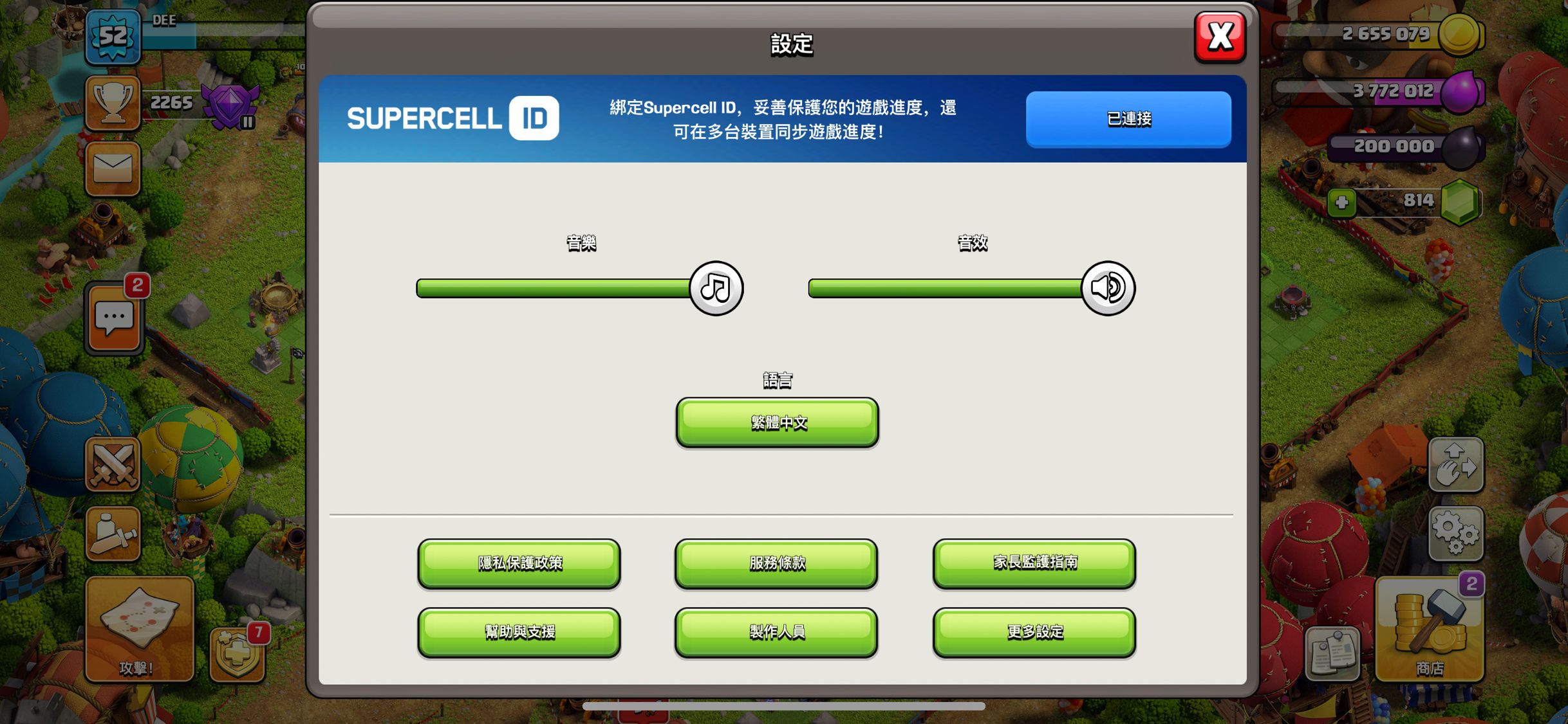 过完新手教程之后,点击设置,上方会有一个 Supercell ID,点击进去按照他的引导注册 Supercell ID 就行啦,账号用常用的邮箱注册就行,之后数据就会和你的 Supercell ID 绑定了。不推荐 QQ 邮箱,否则可能会收不到验证码,163、gmail 这些都没问题(参考 这篇文章)。