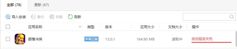 如果你安装的时候提示“启动服务失败”,那么重启爱思助手即可,这是因为爱思助手连接的时间太长被系统断开了。