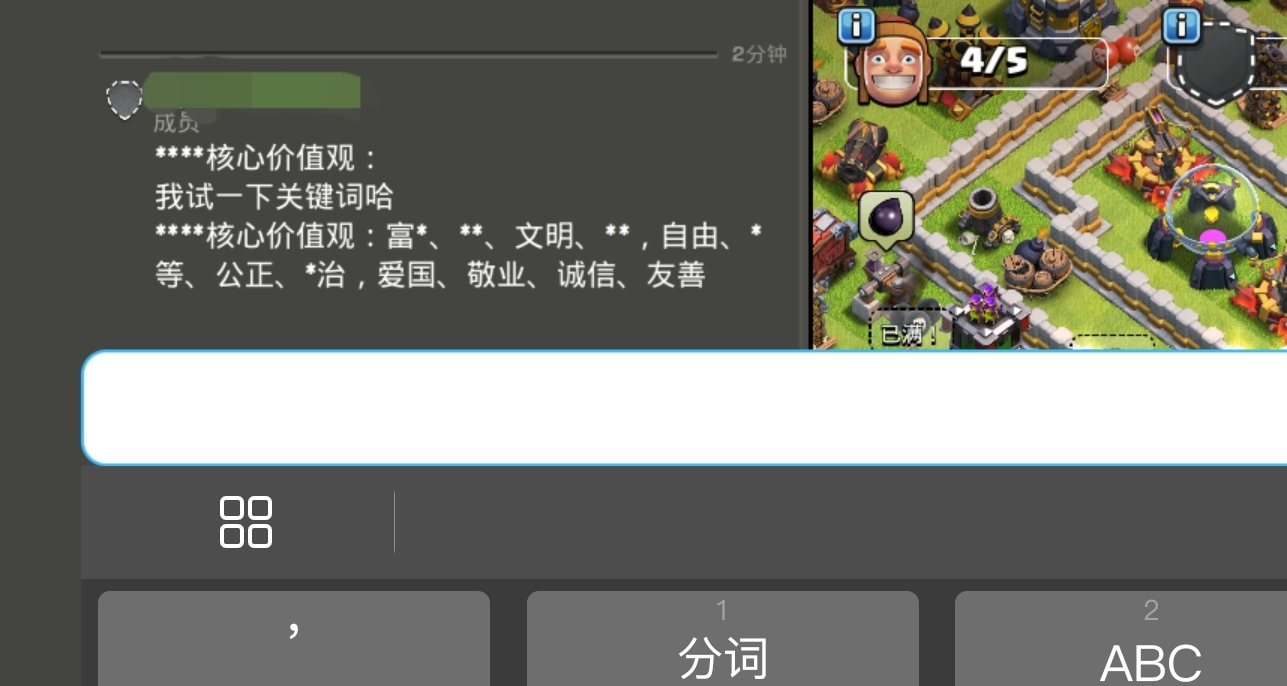 6. 国服屏蔽词非常离谱,现在“来”、“去”、“女王”这种常用词也屏蔽,玩家之间已经无法交流,这种屏蔽力度远远超出了政策的要求。而且一旦一句话里有屏蔽词,整句话都只有你自己看得到。此外这里的屏蔽词还不是传统意义上的屏蔽词,有些词不会变成星号,但发出去之后别人还是看不到;有些词会变成星号,但其他人却可以看到。反正这个问题十分玄学,我觉得你找个算命的算一下说不定还更准一点。