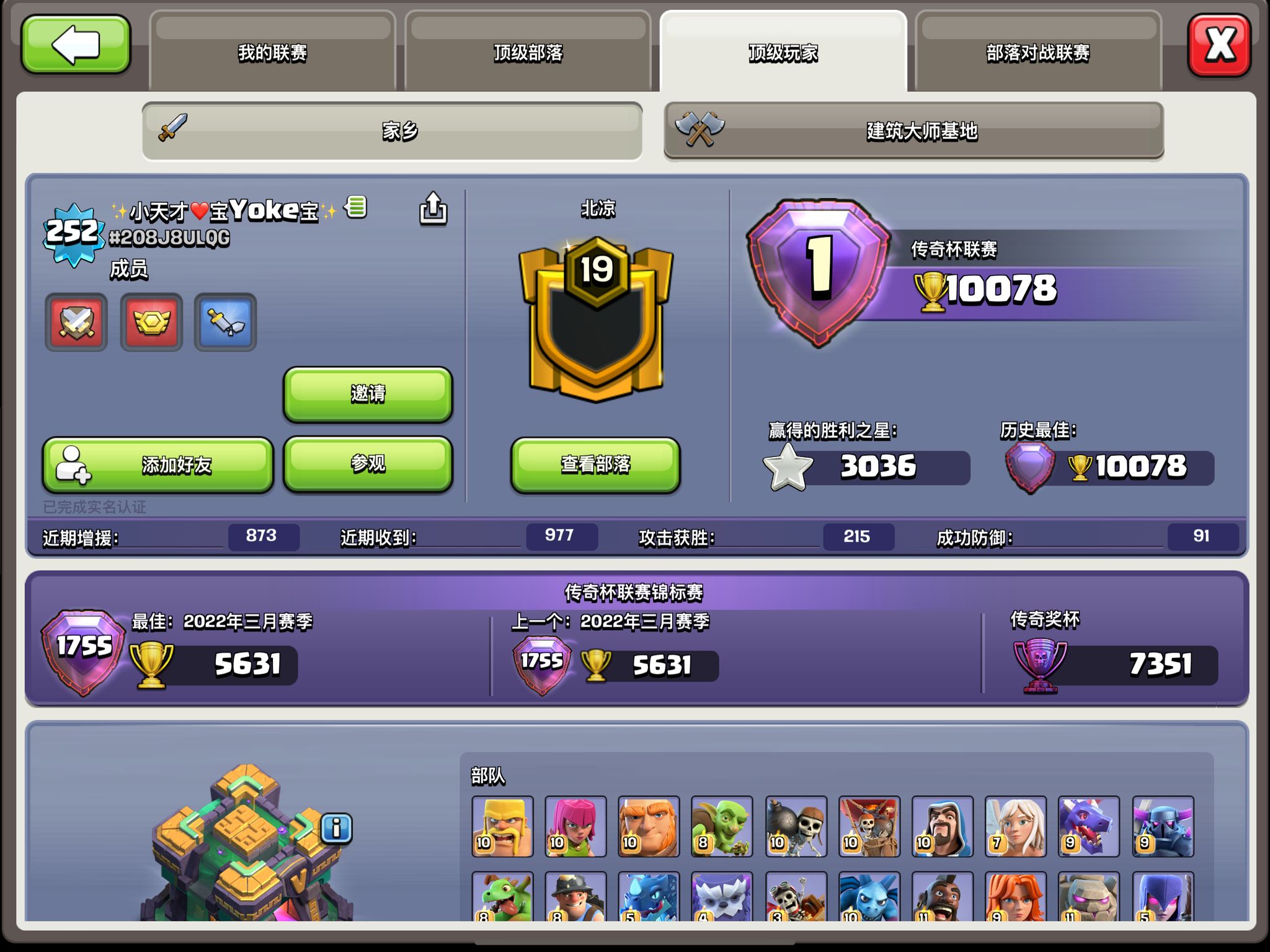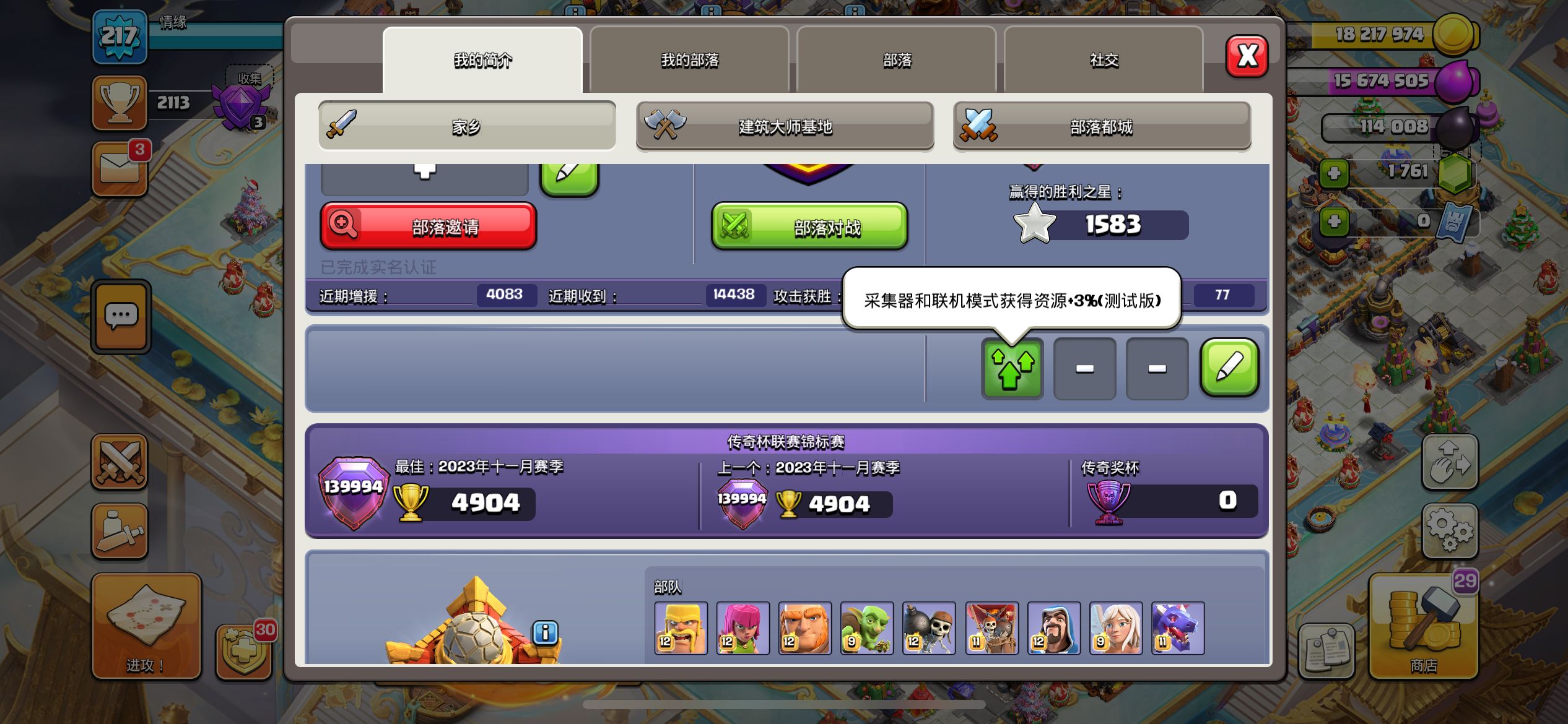 10. 国服买杯现象严重,有人甚至能上一万杯,而在国际服也就六千多。这图月底截的,看看图片里的防御成功数,平均一天三个还多。各位复习一下 coc 里防御成功的定义,对方必须黑三星才算防御成功,顶尖水平的一群人这么多黑三星,你信吗?