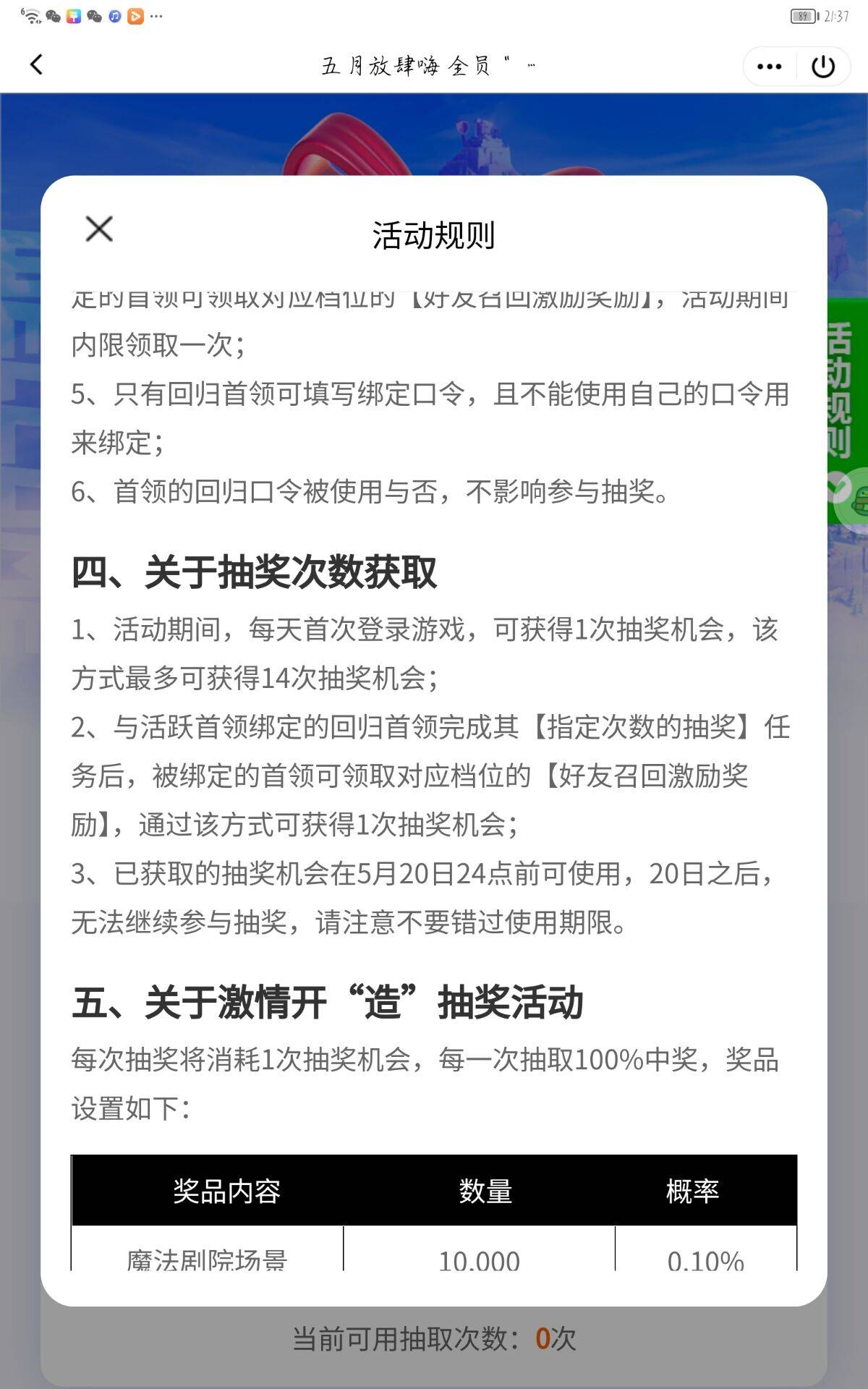 如下图,在 2023 年 5 月的抽奖活动中,每个玩家最多抽 14 次,第 15 次机会只能通过拉回归玩家获得。然而这游戏都这样了,谁还回归啊?
