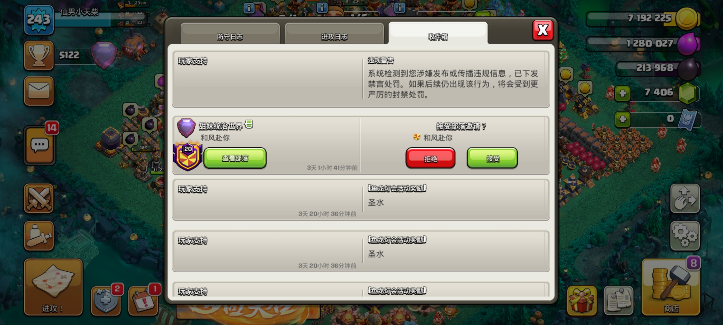 等到晚上十一点半左右,国外的账号已经可以登录了,国内账号基本都提示被封禁,少部分能登录的玩家看到一大堆国人自动退部落。所以国服独立(分服)的事开始大范围传播。曾经我想着,部落冲突这游戏快十年了,玩家盘根错节,他怎么搞个独立的国服出来?现在看来这操作简直简单粗暴,国际服这边的玩家直接剪切,然后粘贴到国服。