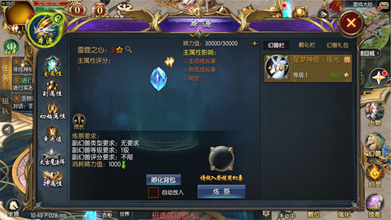 培养方式:将符合条件的幻兽放入炼祭框中,并消耗一定精力值即可进行炼祭。