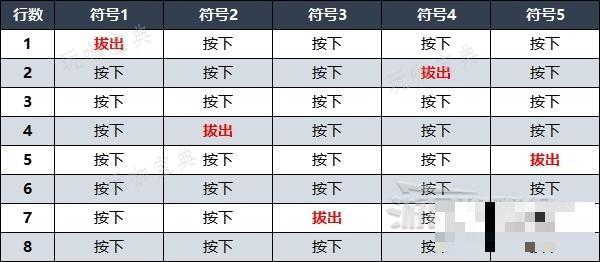 新旋律每行拔出一根柱子即可,从左到右从上到下分别为:14025030。