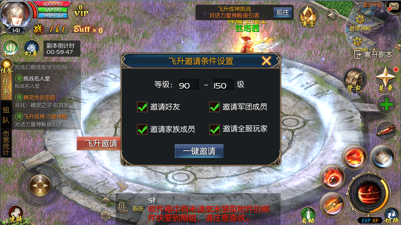 进入虚空神庭后,可在弹出的飞升邀请界面设置想要邀请的对象条件。