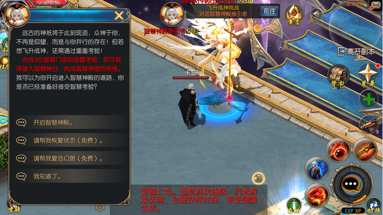 飞升成神第4关——智慧神殿,通过慧神殿接引者贝拉可开启智慧神殿,飞升者须在智慧神殿中完成如下考验:
