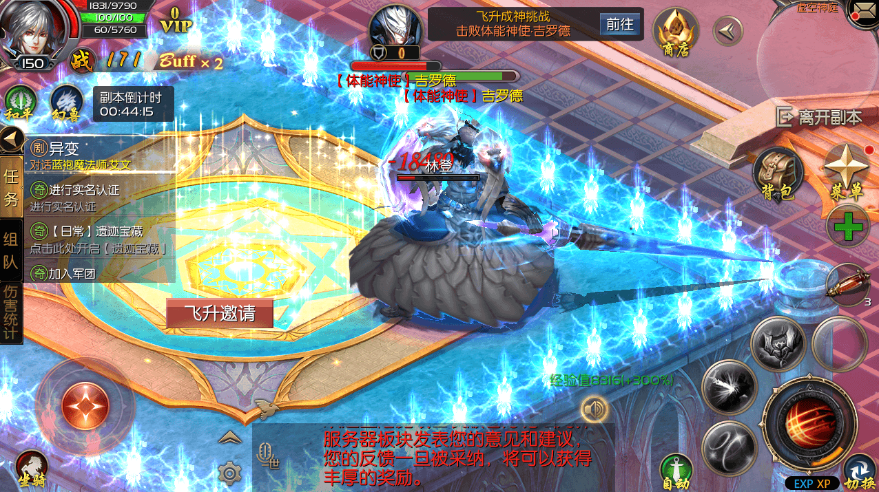 1、在3分钟内击杀50只迅捷战影,获得进入敏捷神台的资格,若未能在3分钟内击杀50只迅捷战影,则需向敏捷神殿接引者申请重新开启该考验,或点击飞升信息栏的“重新挑战”按钮重启该考验。