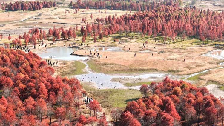 12月15日,游客在江苏兴化里下河国家湿地公园赏景游玩(无人机照片)。12月15日,群鸟在江苏兴化里下河国家湿地公园栖息(无人机照片)。12月14日,在福建省南平市顺昌县高阳乡大富村的龙山观景台,游客自驾观看日出云海(无人机照片)。