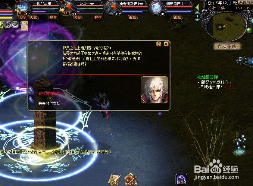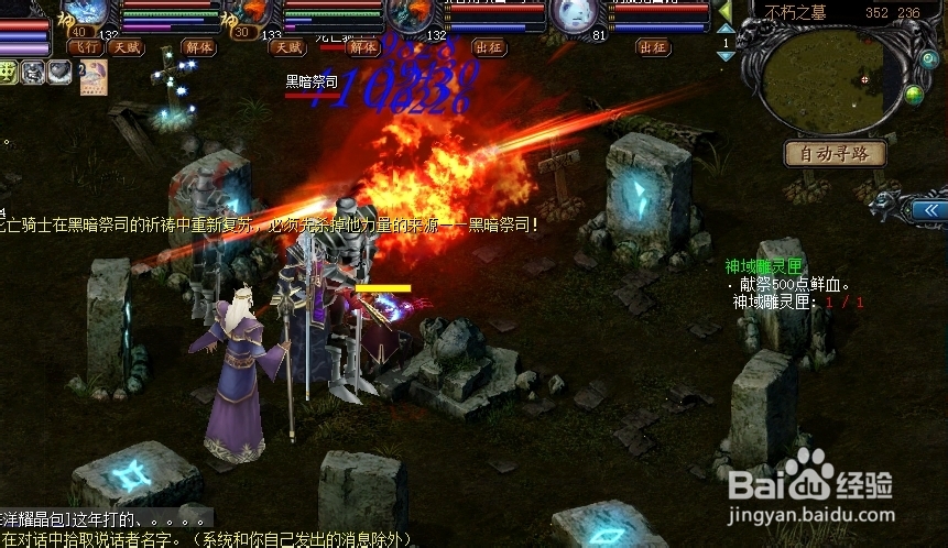 而在路上见到的那些长老当boss出来的时候他们就会被激活,但是这些长老也在boss死后他们也会消失,所以可以不打,主要是在这四个怪最后一个死的时候把boss拉出来,与长老分开就行。建议点一次怪杀一次,最后的怪拉到上面杀不要在原地,