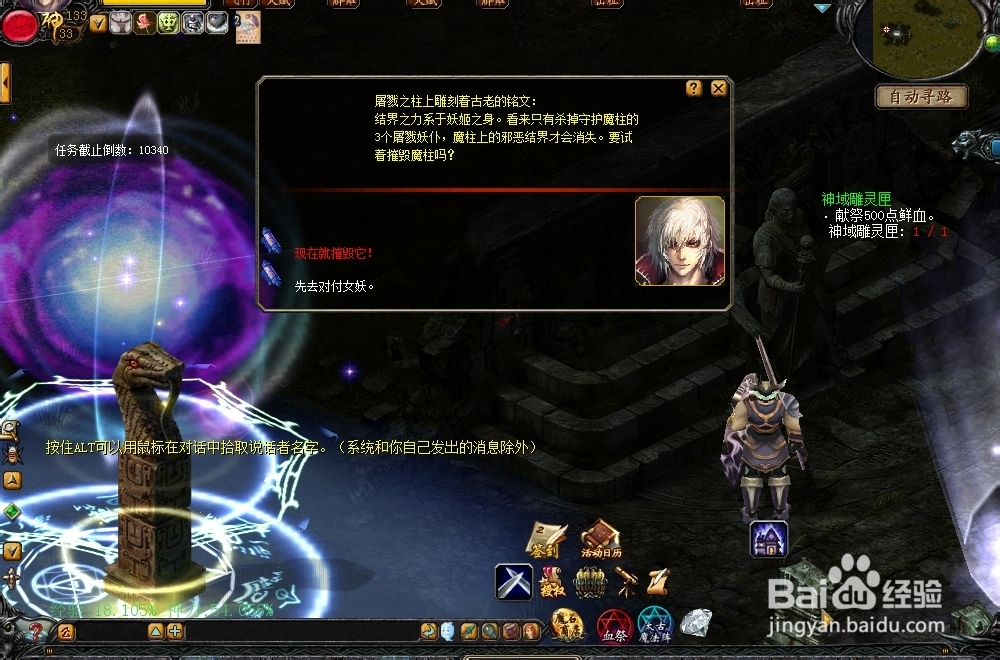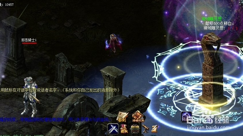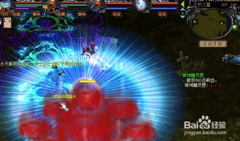 然后一直向boss的地方前进,这里有四个柱子,点开柱子就会召唤小怪,如果你的防御比较高可以一次开四个柱子把怪集中起来再杀,这效率会更高,如果防御不高建议开一个柱子杀一次怪。