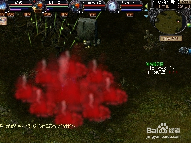 你要杀死四个拿木棍子的法师,周围那些小小的怪不用理会,可以不杀的,(如果你抗不住也可以先杀了它们),