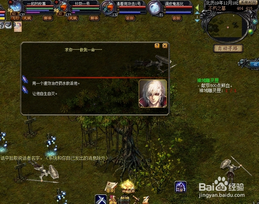 路上会遇到这里,你可以用药水救这些士兵可以得到一些经验,不过建议用小号点,因为大号点了加很少很少经验的。
