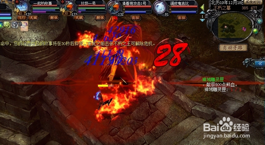而且前面两关,你没杀死一次,你全身的宝宝都会复活一次(如果有宝宝阵亡)。第二关完了之后,就直奔下面对最终boss不朽之王了。
