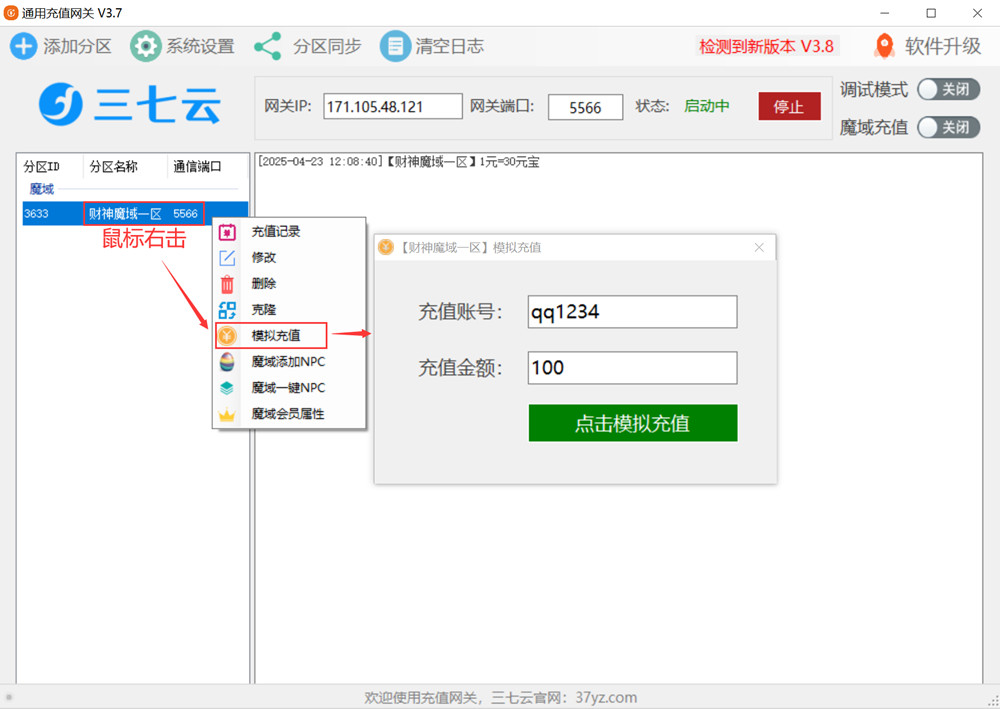 1、下载充值网关,下载地址:https://37yz.com/index/download.html