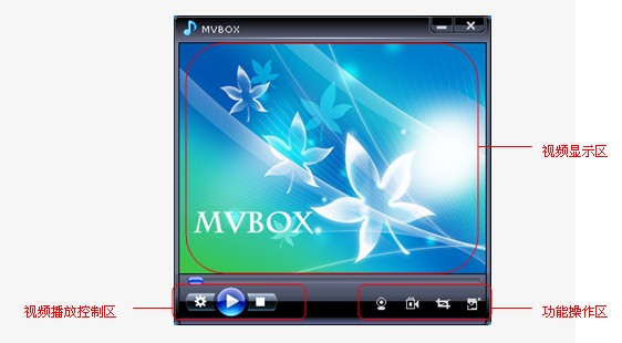 功能说明 备注 主窗口 通过主窗口可以对播放器进行系统设置,同时还可以通过菜单直接浏览个人空间的首页,对个人空间进行管理。 视频窗口 视频窗口既可以用来显示用户选择的背景图案,播放MTV,又可以播放本地的视频文件。它可以实现视频、图片、摄像头取景以及合成效果,同时还可以加大头贴前景,实现虚拟视频、画中画、摄像头抠像、多人通道、文字滚动字幕、视频捕捉等多种视频特效,进行多个视频特效的叠加。在用户播放播放器内歌曲时还会有歌词伴奏字幕显示。 只有在MVBOX里下载的歌曲才支持同步KSC字幕,添加的本地其它歌曲的LRC歌词可能有个别的不同步,需要调整选择。 点歌台 点歌台是方便用户点播歌曲的地方。MVBOX具有超大乐库,用户通过点歌台可以搜索到平台内所有的歌曲。同时点歌台内还包括视频、图片、大头贴等多种素材下载,方便用户使用各种素材制作自己的MTV。 可能会有你找不到的歌曲 背景设置 背景设置主要是让用户自我选择在MTV视频窗口内显示的背景模式,他可以是大头贴、图片、视频、摄像头以及合成模式,同时还提供摄像头显示效果选择。 没有摄像头时,只能用图片、视频和大头贴功能 虚拟视频 虚拟视频功能是为了方便用户在UC、QQ等各种大型视频聊天软件内将自己演唱或播放的视频分享给其他用户。 上麦时必需保证MVBOX为当前默认虚拟视频 录像 点击录像按钮,开始进行录制视频。 有的机器可能需要通过系统音频控制器进行录音设置 屏幕捕捉 点击屏幕捕捉按钮,启动屏幕捕捉功能面板。再次点击该按钮,停止屏幕捕捉功能。