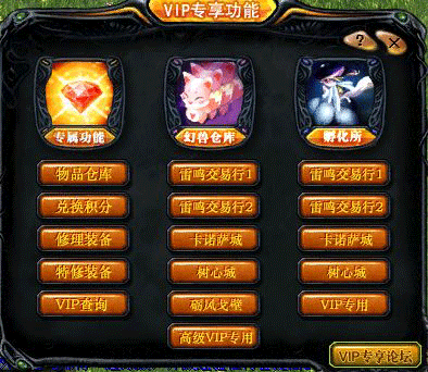 成为VIP以后,在游戏主界面的右下角可以看到一个钻石的图标,点该图标就可以使用相应的功能,如下图: