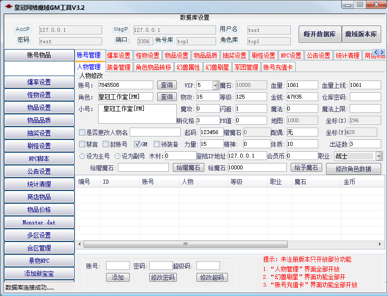 蜀门私服gs皇冠网络魔域GM工具3.8无授权免费版