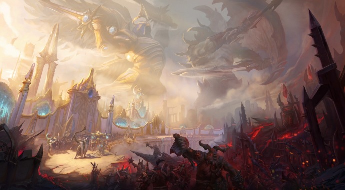 当然,天使也是不可能一直抵挡住恶魔的攻击的,因此永恒战场有时便会易手给地狱一方,随后地狱也会着手修缮要塞,久而久之,在不断的易手之后,混沌要塞就融合了天堂和地狱的建筑风格,大家在暗黑3第五幕的场景里即可看到。