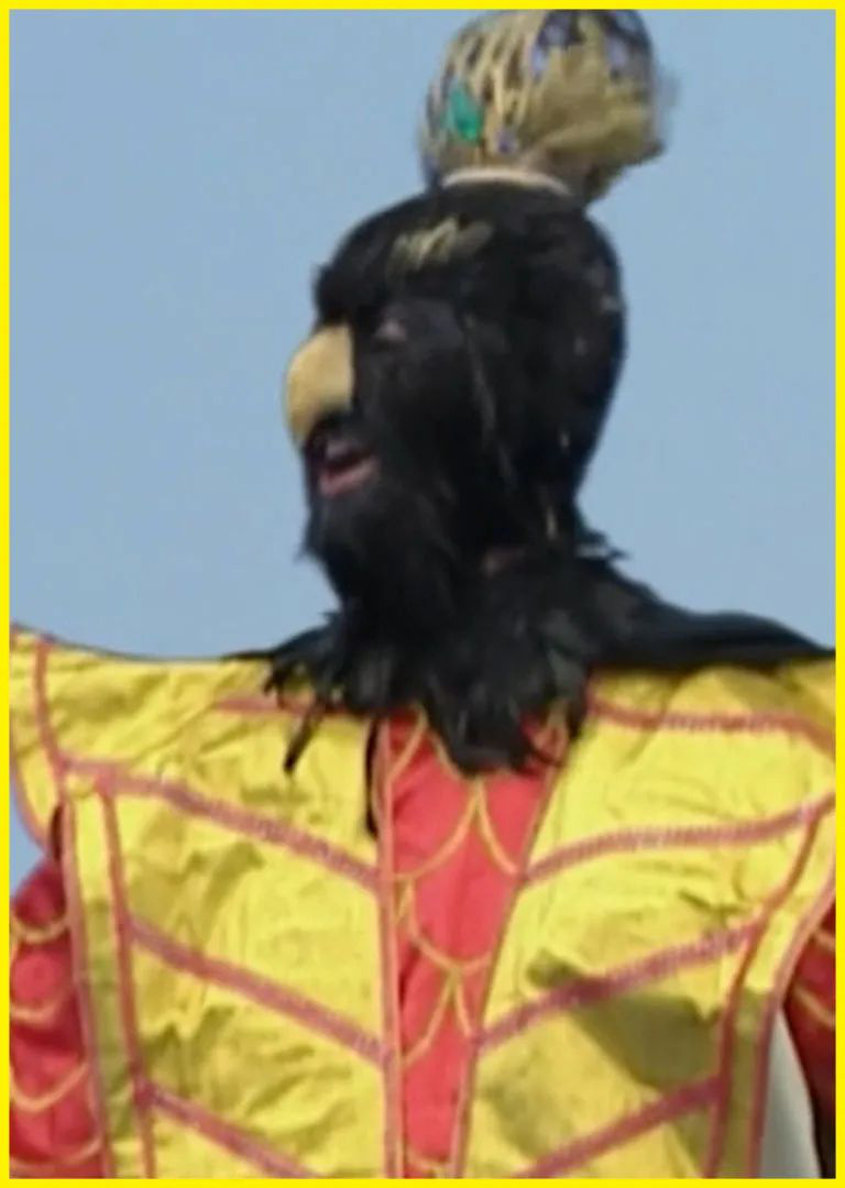在两人的夹击下,九头蛇抵挡不住,于是露出本相,原来是一只九头怪鸟,形象吓人,趁乱抓走了八戒。