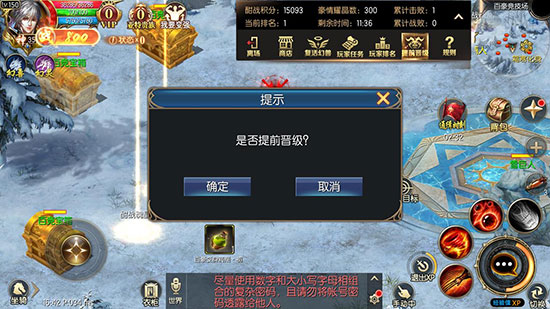 每场比赛会有10个提前晋级的名额,在单场比赛中率先获得100枚豪情耀晶[绑]的参赛者可通过“提前晋级”按钮退出比赛。