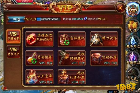 VIP等级达到3级的神选者可以通过点击“商城”—“VIP”—“女王宝库”进入女王宝库的神秘世界。