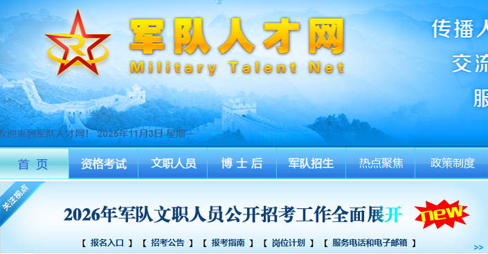 考生可于2025年11月3日8:00至9日18:00,魔域世界砖石版登录军队人才网进行网上报名。