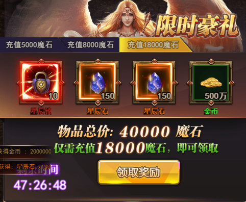 A:9月26日版本更新后,推出星辰装备系统,在角色登陆的48小时内,充值指定额度即可享受不同豪礼。
