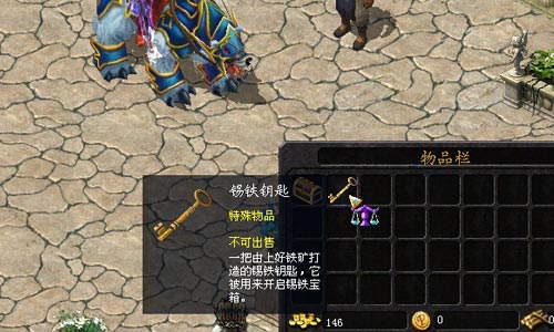物品说明:一把由上好铁矿打造的锡铁钥匙,它被用来开启锡铁宝箱。点击右键使用。