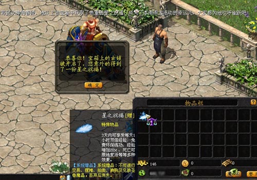 物品说明:一只历史悠久的上古宝箱,锡铁制作的部分已经锈迹斑斑,开启将获得浪漫而美妙的神秘礼物。点击右键开启宝箱。