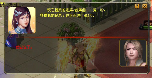 你用那无可挑剔的舞姿赢得了满堂喝彩!当你在指定的时间内成功地跳对50步后,便可以从安琳歌舞教练处获得1块珍贵的神佑水晶!有了神佑水晶,你便能进入隐秘的上古神迹!