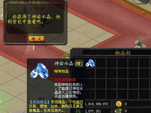 物品说明:受到神衹庇佑的人,最新轻变态魔域才能通过神佑水晶进入上古神迹。点击右键使用。