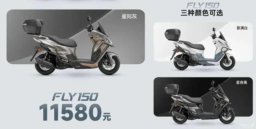 钱江FLY150售价:11580元;出厂自带加粗护杠、大容量尾箱。(意满白、昼夜黑、星际灰,三色可选)