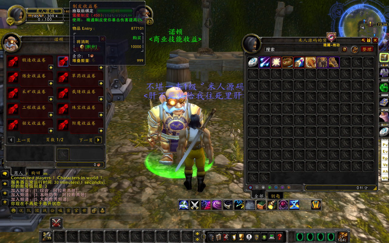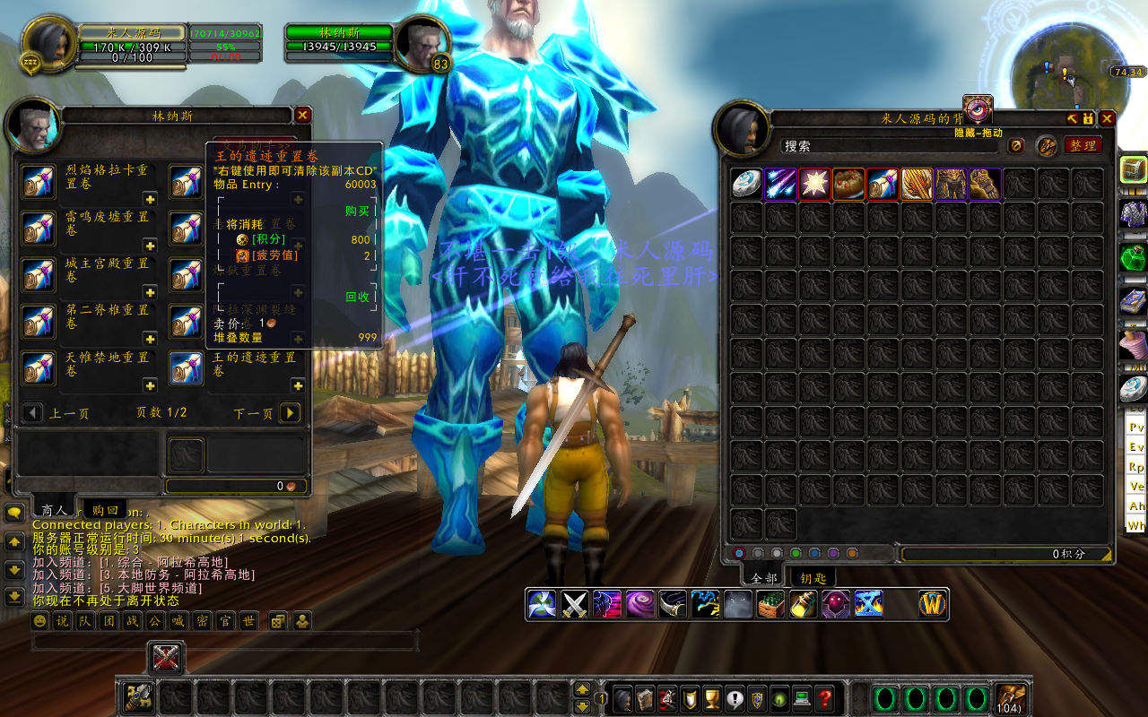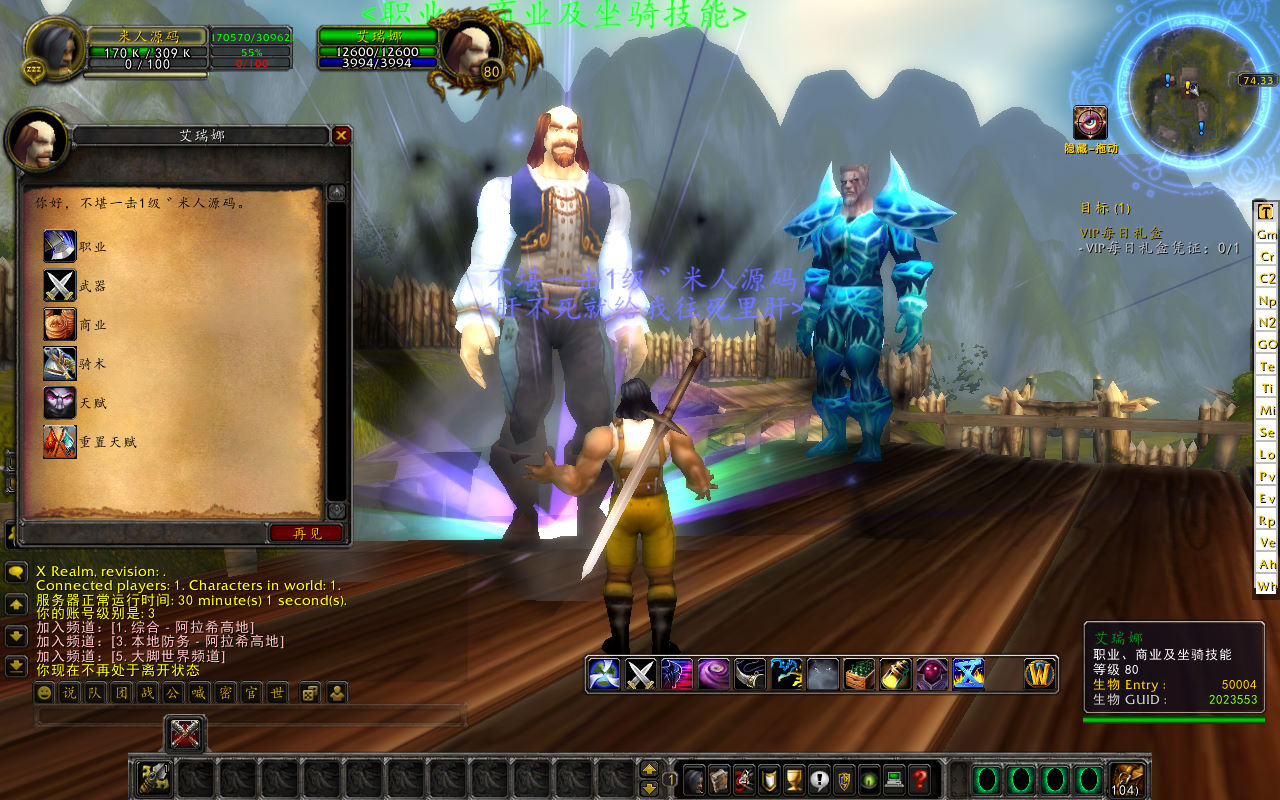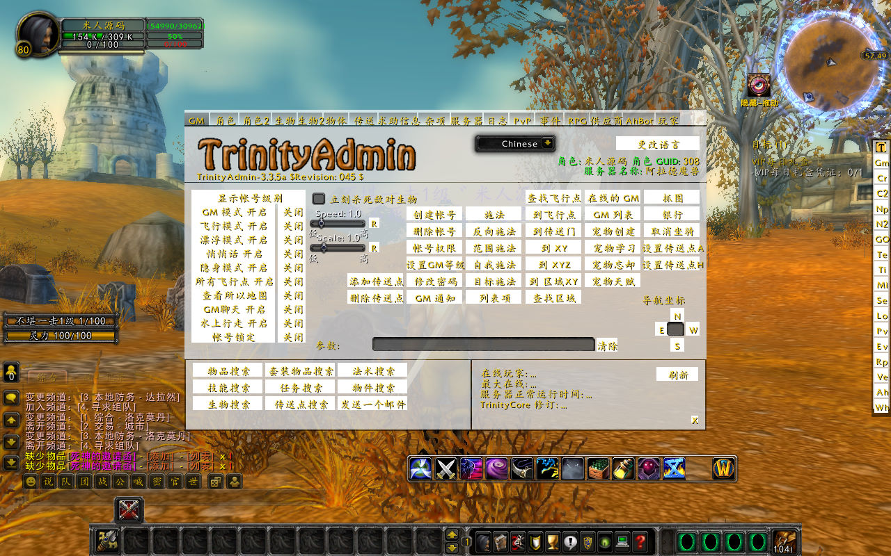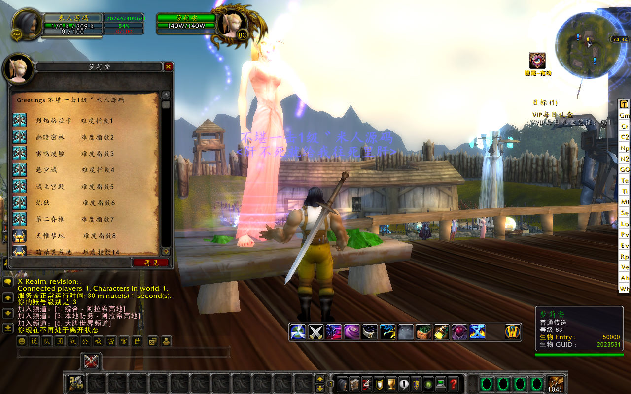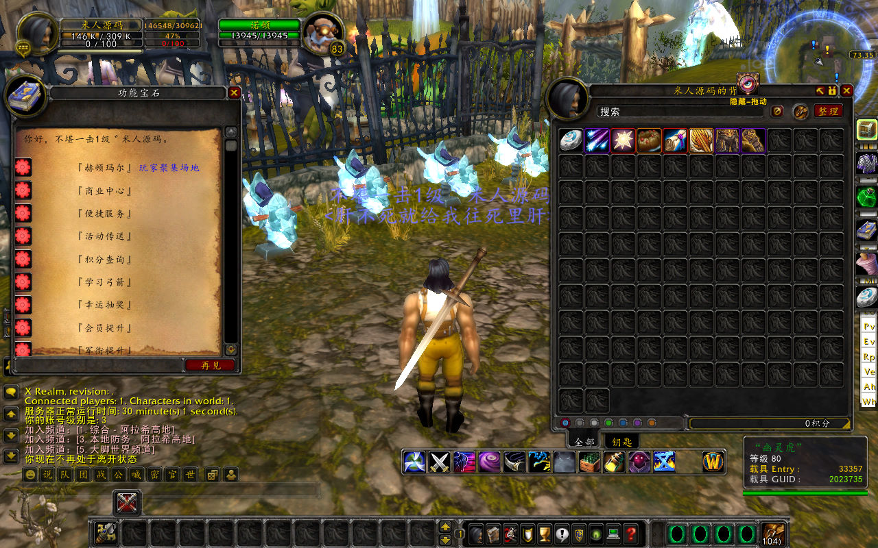 下面我们测试下游戏里的功能吧。好了,其他功能就自行测试吧。更多的游戏资源可访问下载,我们每款游戏资源均单独制作了独立的视频架设教程,让小白也可以快速上手游戏架设,快来体验做GM的乐趣吧!
