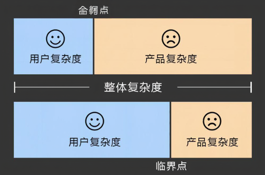 06、复杂度守恒:别让用户背锅复杂度守恒定律指出,产品的整体复杂度是一个常量,不会因为表面的简化而消失,只会从一个地方转移到另一个地方。也就是说,如果你想让用户端的操作变得简单,那背后的系统和开发团队就得多承担一些复杂度。
