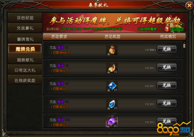 活动说明:活动期间,拥有魔牌道具可领取活动奖励