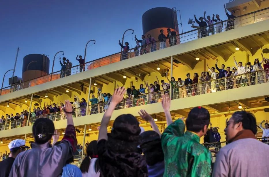 依托一艘具有上世纪20-30年代风格的蒸汽轮船及大汉口老码头,从游客步入码头拉开演出序幕,登上大型轮船后用电影手法进入剧情和角色互动,并在长江上以漂移的方式逐层分舱叙事,实现了码头与船即剧场、游客人人皆演员的沉浸式体验。