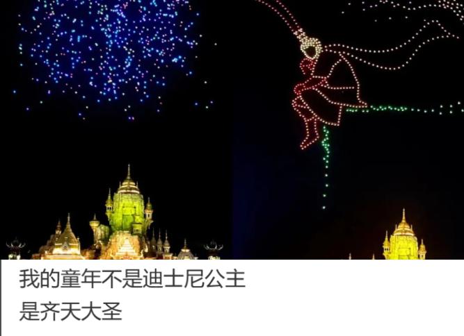 更戳大家爽点的是,晚上不仅有斑斓绚丽的烟花秀,还有2000台无人机表演大圣归来。