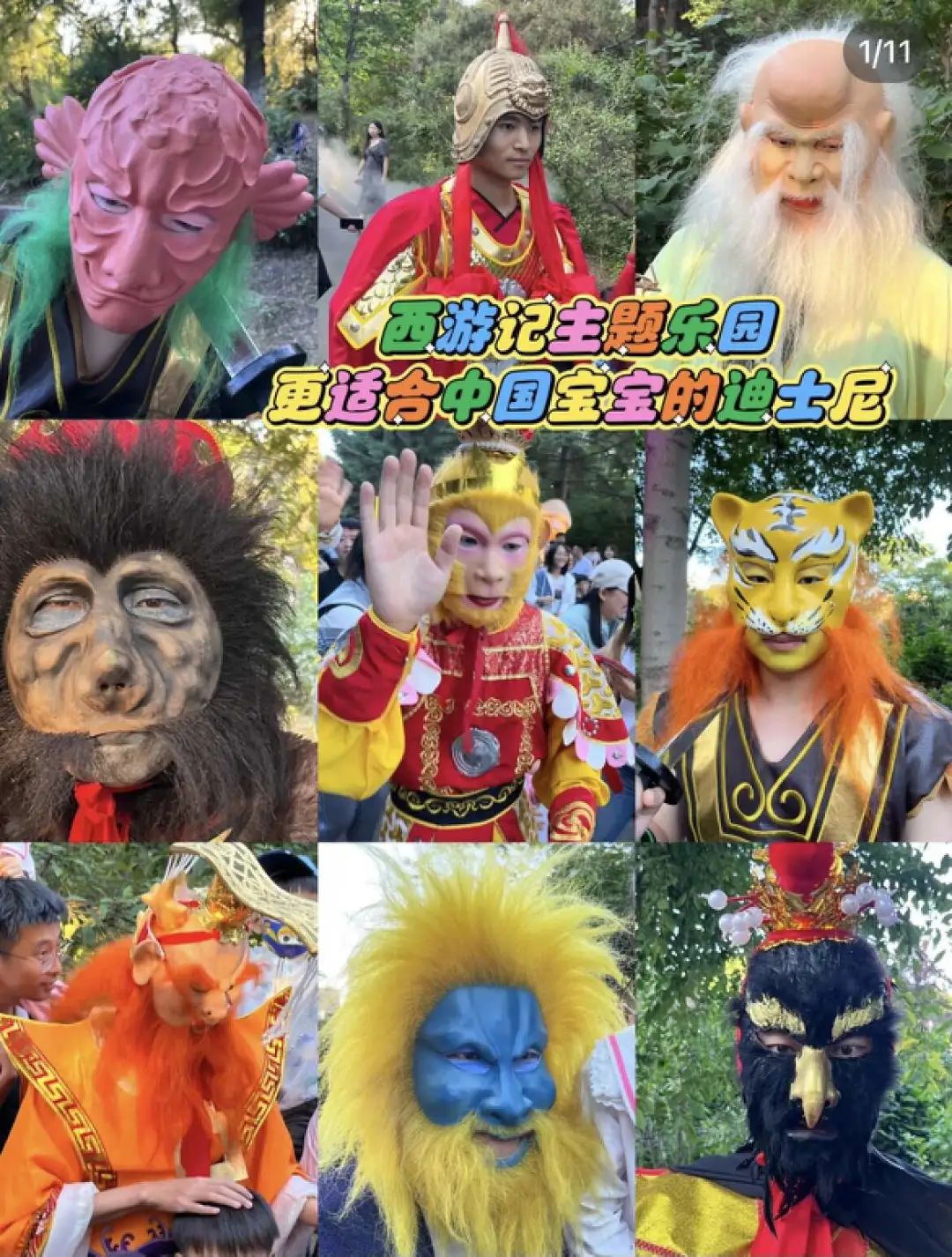 有人还跑遍园区,集齐了南天门妖怪的合影。