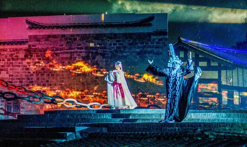 以中原文化与国潮交汇的「只有河南·戏剧幻城」,是河南斥资60亿建造的全国首座全景式沉浸体验主题乐园,也是目前全世界最大的戏剧聚落群。