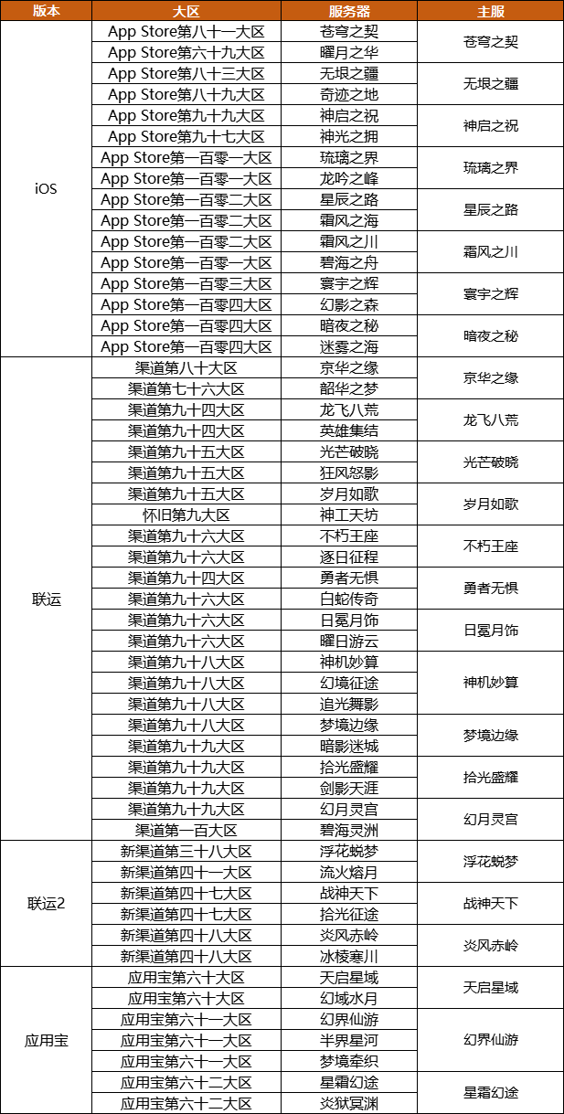 AppStore大区、联运大区、应用宝大区:2025年6月17日
