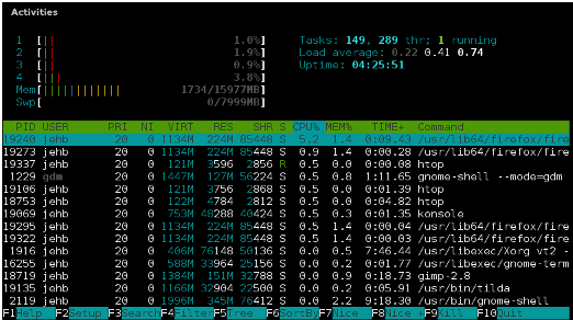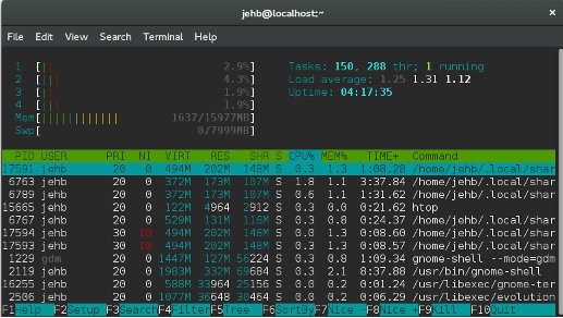 以下是基于htop命令进行展示的结果: