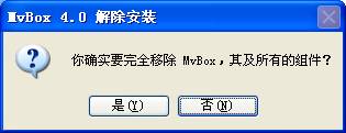 第二步: 在弹出的MVBOX解除安装窗口中,直接左击“是”,系统会自动卸载MVBOX。