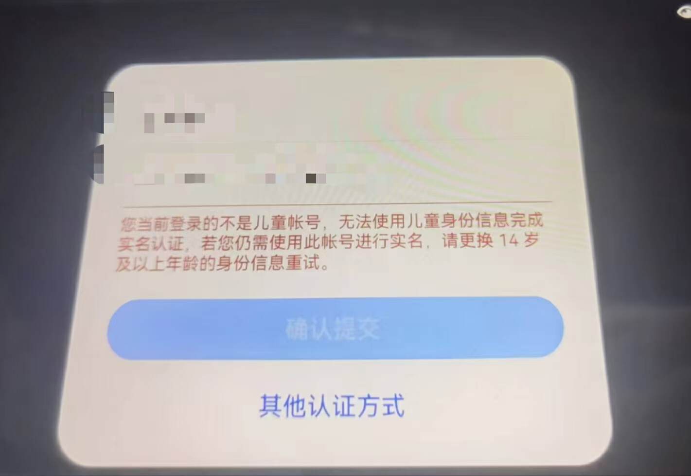 (图说:华为渠道服游戏注册页面使用未成年人信息实名不予通过)