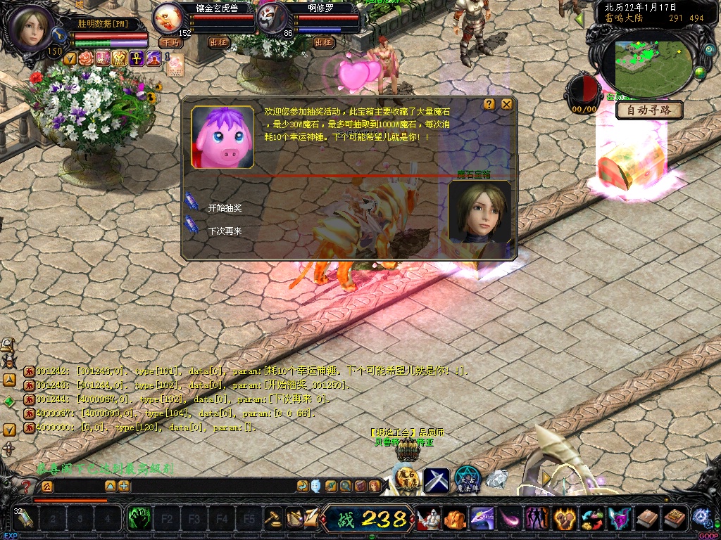 7. BOSS自动入包魔石,全地图的BOSS杀死一只入包10W魔石并爆大量副宠及270点卡、2700点卡等。