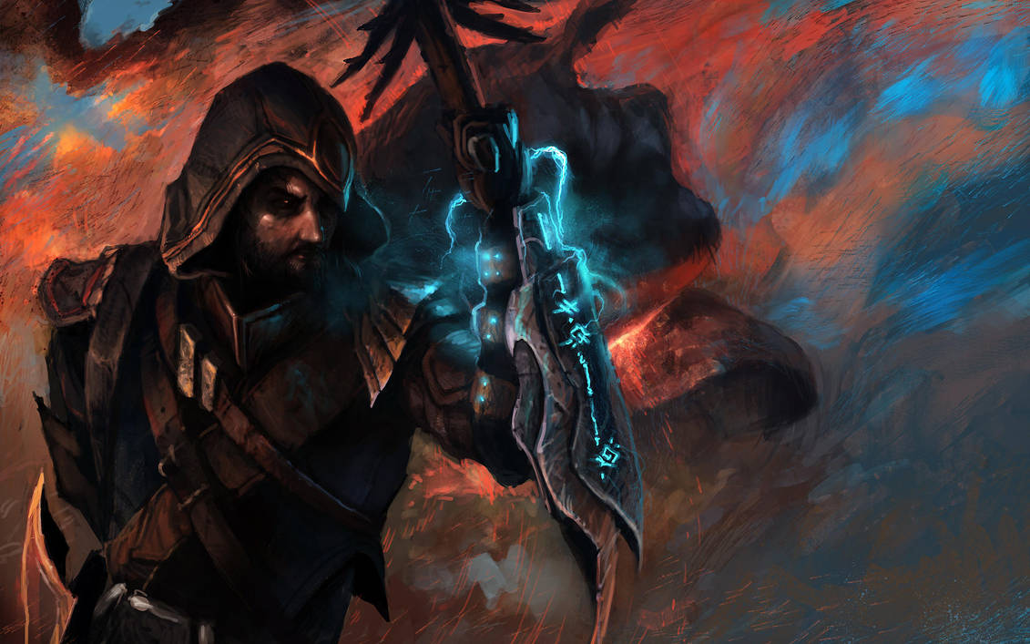 为了一探究竟,杨明也跟了出去。附魔师在大雪中跋涉,跌跌撞撞地往永恒森林的方向赶。为了保证木材和水源,要塞城堡多依河流林地而建。永恒森林离要塞并不远,但大雪之中难以行进,剩下的两个家伙很快就找到了他。追捕附魔师的三个人里有一个被杀掉了,横尸要塞门口,混在一地的尸骸中,几乎难以辨认。死者的同伴似乎完全不在意这些,继续追赶,也完全不管自己身后还有一个人跟着。